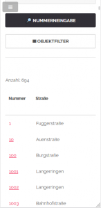 Sollten Sie die Nummer eines bestimmten Objekts kennen bzw. parat haben, so können Sie hierfür die Option Nummerneingabe nutzen und damit auf schnellem Wege zum entsprechenden Objekt weitergeleitet werden.